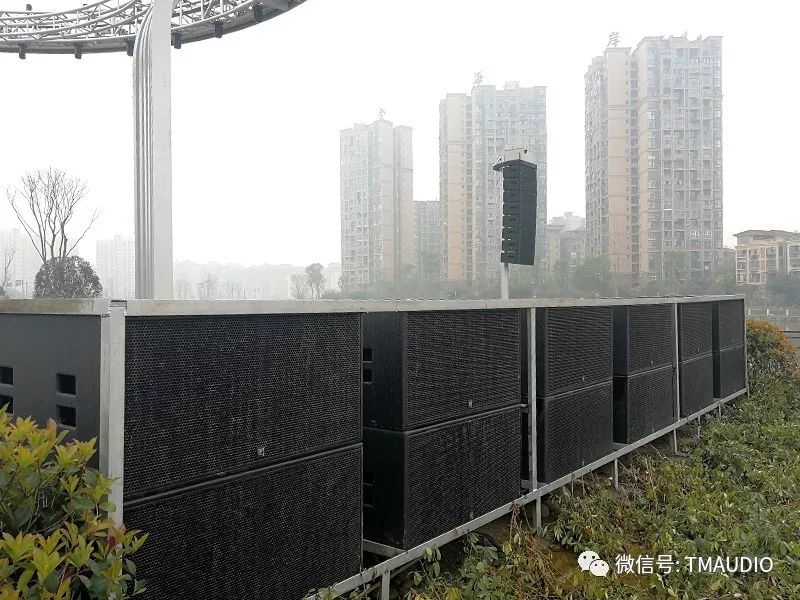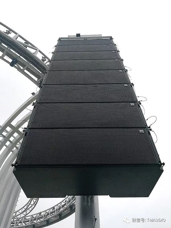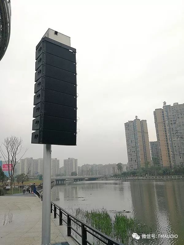 本次項(xiàng)目采用TechMount提艾姆LA-212F線性陣列大型的3路驅(qū)動(dòng)的三分頻戶外全天候防水音響系統(tǒng),LA-212F線性陣列全天候防水音箱 16只,線陣音箱低音采用兩只大功率高效率12寸釹磁單元,呈啞鈴式對(duì)稱結(jié)構(gòu);中音和高音前后同軸結(jié)構(gòu)設(shè)計(jì),中音單元安裝有相位塞,大大提升了聲音的指向性,增加了中音高頻的穿透力。高音部分使用兩只高效率釹磁壓縮單元,通過(guò)一個(gè)平面波轉(zhuǎn)換器結(jié)合組成90度的指數(shù)曲線恒指向號(hào)筒,產(chǎn)生一個(gè)一致的波陣面,全釹磁高靈敏度單元構(gòu)成一個(gè)超大動(dòng)態(tài)的完美組合。
