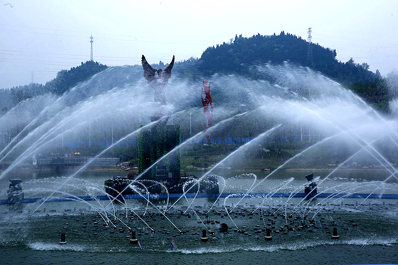 白馬湖音樂噴泉占地面積約500平方米,共有10組音樂噴泉,采用國內(nèi)先進(jìn)科技,將聲、光、水融合,展現(xiàn)變化獨特、新奇的水舞景觀效果。