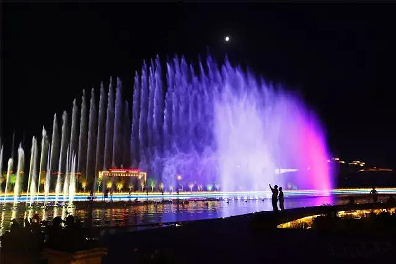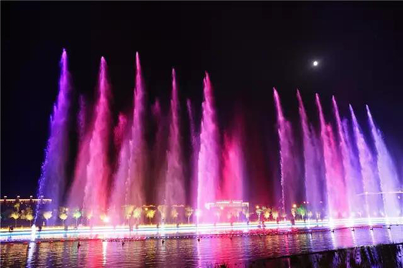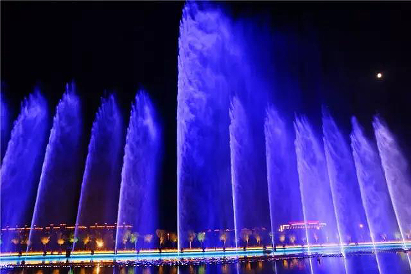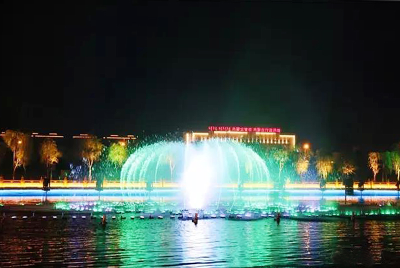 內(nèi)蒙古呼和浩特賽罕區(qū)小黑河水舞燈光秀全長168米,