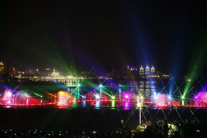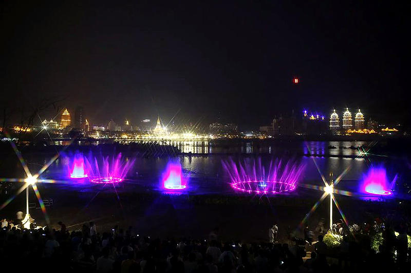 瀾滄江音樂噴泉建設于世紀金源酒店前、龍舟廣場下側瀾滄江邊,總計劃投資額2000余萬。是景洪市提升人居環境、建設宜居和諧幸福家園進程中又一項惠民工程,是景洪城又一個集休閑娛樂、文化交流、旅游觀光為一體的新景點。