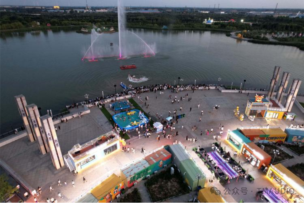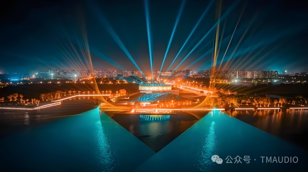 廣州升久聲光科技TechMount(提艾姆)全天候擴聲系統為大麓生態公園音樂噴泉助力,該音樂噴泉項目采用了全天候旗艦新系列產品 DF-WP系列音箱作為音樂噴泉廣場的主擴聲系統,16只DF-15WP全頻音箱多點環繞分布,以保證場地音樂聲壓全覆蓋并且分布均勻,給觀眾以沉浸式全景聲體驗感。