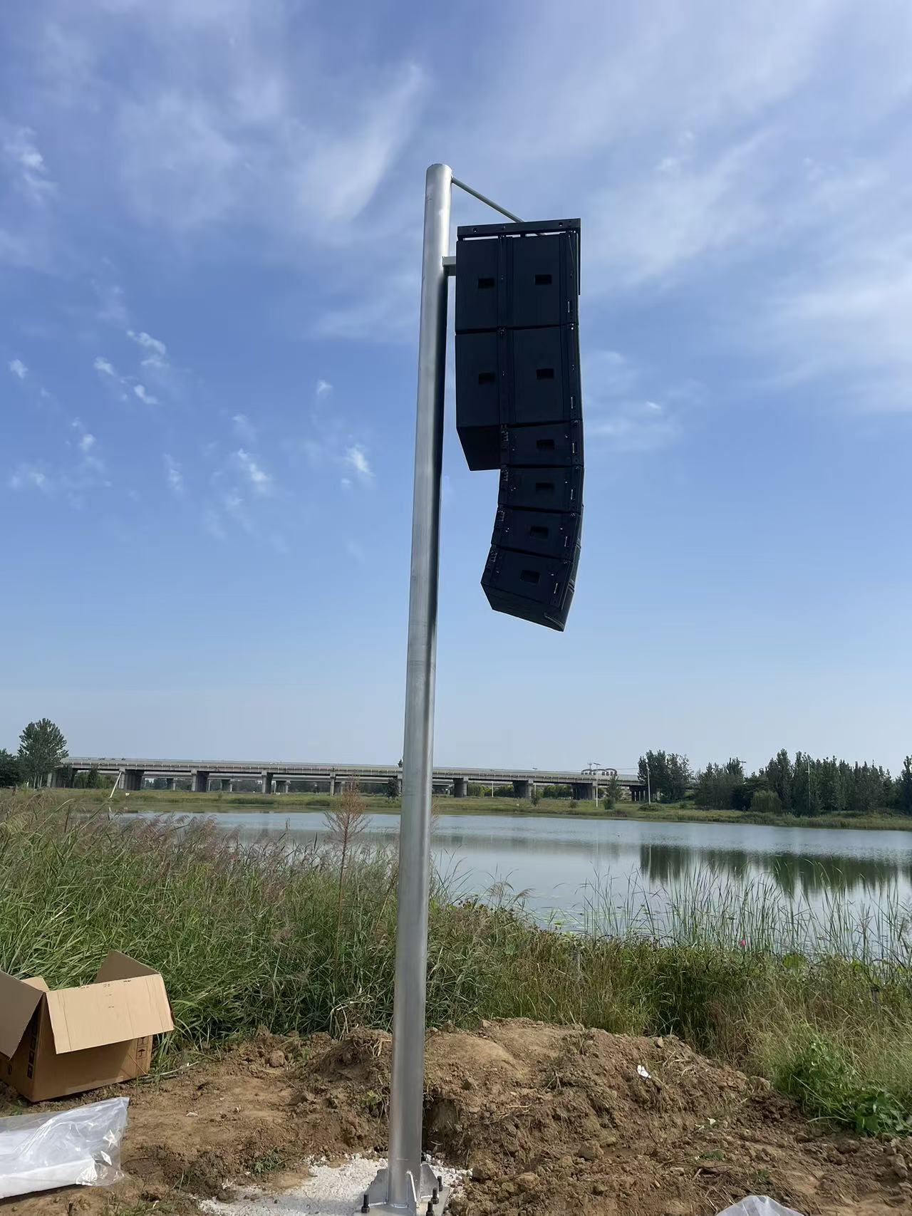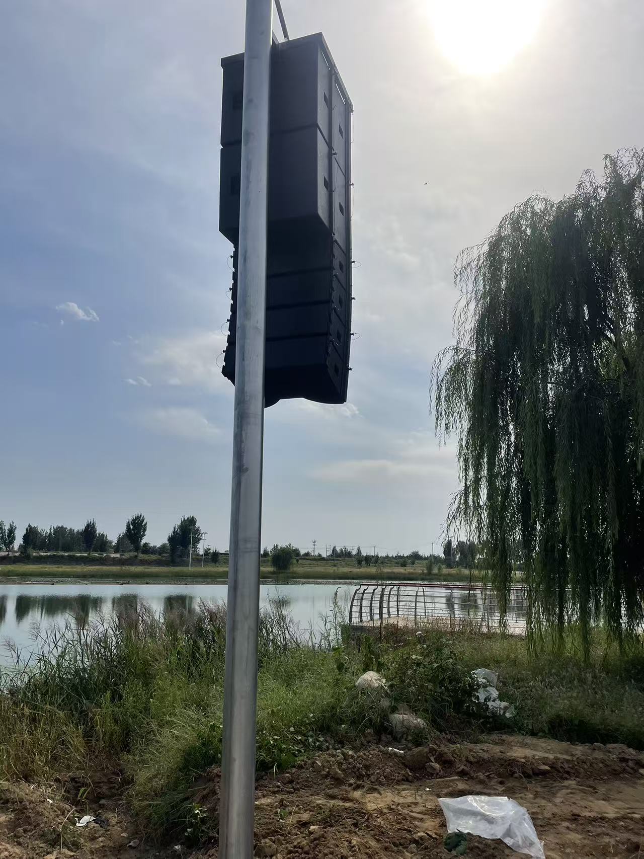 本項(xiàng)目采用升久聲光科技經(jīng)典LA-WP系列戶外線陣音響系統(tǒng)。此次主擴(kuò)音箱采用型號(hào)為L(zhǎng)A-82FG2線陣音箱24只,SUB-18XC超低音箱8只,分四組吊裝布置;該系列產(chǎn)品具有大功率,高靈敏度,高聲壓,射程遠(yuǎn),穿透力強(qiáng),指向性強(qiáng)等特點(diǎn),專為戶外文旅擴(kuò)聲項(xiàng)目而定制。8只超低音箱SUB-18XC采用高效率超低音喇叭,具有瞬態(tài)反應(yīng)快,低頻下限好,功率大,動(dòng)態(tài)大等特點(diǎn)。另外配套系統(tǒng)還包含PRO系列專業(yè)功率放大器16臺(tái),數(shù)字音頻處理器2臺(tái),專業(yè)播放器 2臺(tái),專業(yè)聲卡 2臺(tái),專業(yè)調(diào)音臺(tái) 2臺(tái)等周邊系統(tǒng)。